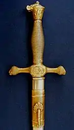 The sword is based on that used by the US Army when USMA was founded (16 March 1802). The first swords used were legacies from the Army following the formation of the Academy in 1802 and are believed to have been similar to the 1767 French Grenadier Sergeant's sword used in the Revolutionary Army. The first swords procured for the Academy were delivered in 1838.[4]
