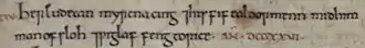 ![]() Wiglaf's name (spelled ƿiglaf, with a wynn) in the 825 entry of the [C] manuscript of the Anglo-Saxon Chronicle | |
