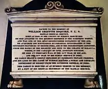He married Emily Henderson (sister of his brother's wife) in September 1844 and in December of the same year he sailed from Calcutta to Malacca but on arrival in January 1845 he suffered from hepatitis and died on 9 February. He was buried in Malacca. A memorial tablet was placed at the St. George's Cathedral in Madras.[2][3]