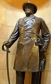 In 1905, Colvill traveled to the Soldiers Home in Minneapolis to attend a reunion of the veterans of the First Minnesota. While there, he died in his sleep on June 13.[1] He is buried in the Cannon Falls Community Cemetery in Cannon Falls, Minnesota. His original statue sits atop a shady hill where it overlooks the cemetery. In 1928, President Calvin Coolidge was present for the dedication of a statue that was placed next to his grave.