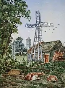 The tower mill at Ramsey was a combined corn and saw mill. It was built by John Monk and completed on 29 August 1836. A steam engine was added as auxiliary power in 1862. It is thought that the windmill ceased to work by the end of the 1870s. The tower was 35 feet (10.67 m) diameter at the base and 64 feet (19.51 m) high[1] The six storey tower was reduced to a two-storey base in the 1960s and the mill is now a house conversion.[2]
