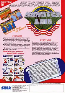 Wonder Boy III: Monster Lair (ワンダーボーイIII モンスターレア, Wandā Bōi Surī: Monsutā Reā, "Wonder Boy III Monster Lair") is a side-scrolling action game developed by Westone Bit Entertainment that was originally released for the arcades by Sega in 1988. It is the third game in the Wonder Boy series and the last one released for the arcade. A console adaptation was made by Hudson Soft, released in 1989 in Japan for the PC Engine CD-ROM² System and the subsequent North American release on the TurboGrafx-CD dropped the 'Wonder Boy III' title. It was also converted and released by Sega for the Mega Drive in Japan in 1990 and Europe in 1991. Both, the TurboGrafx-CD and Mega Drive versions have been re-released for the Wii Virtual Console.