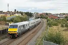 In October 2006, an evaluation service ran from London Marylebone to Wrexham General via the proposed route using the EWS Company Train.[10][11] This evaluation train, formed from a rake of Mark 3 carriages with a British Rail Class 67 locomotive on either end. This was a satisfactory arrangement, and it was announced that a broadly similar arrangement would be used for the regular service during December 2006.[12][13] However, Wrexham & Shropshire's original plans had envisaged using either Class 158 or Class 170 diesel multiple units, but a lack of available rolling stock had compelled the company to adopt the locomotive-hauled arrangement instead.[14] Reportedly, planners had initially identified five potential routes for the service.[2]