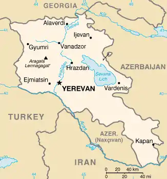 | Administrative divisions: | 11 provinces (marzer, singular - marz); Aragatsotn, Ararat, Armavir, Geghark'unik', Kotayk', Lorri, Shirak, Syunik', Tavush, Vayots' Dzor, Yerevan |