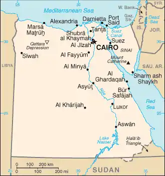 | Ports and harbors: | Alexandria, Al Ghardaqah, Aswan, Asyut, Bur Safajah, Damietta, Marsa Matruh, Port Said, Suez |