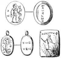 King, The Gnostics and their Remains (London, 1887); Bellermann, Versuch über die Gemmen der Alten mit dem Abraxas-Bilde (Berlin, 1817–19); Dieterich, Die Abraxas (Leipzig, 1892); Leclercq, in Dict. d'archéol. chrét. et de liturgie, I, 127 sq.; Matter, Hist. du gnosticisme (Paris, 1843); Montfaucon, L'antiquité expliquée (Paris, 1722), II, 2, 353.