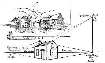 Sketch your house first, then puzzle out your perspective. Check the drawing by the perspective, never the perspective by the drawing. You will find, as time goes on, that you will rightly register the perspective with more and more ease.