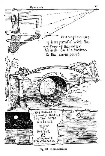All reflections of lines parallel with the surface of the water vanish on the horizon at the same point.