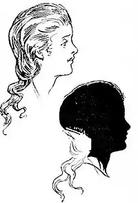The silhouette filled and the outline firm and clear, you will note any projection of hair, frills, collar, lace, and ribbons. Draw these with a delicately fine line.