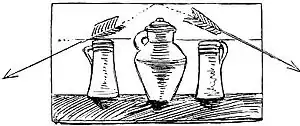 Or, if we strongly desire an oblong instead of an upright composition, we could place two of the pots together and the third a space apart, linked by a fragment of ribbon, a feather, a spray of leaves (Fig. 102).