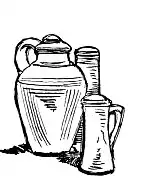 We will take the subject of three pots, one large and two of a medium size.