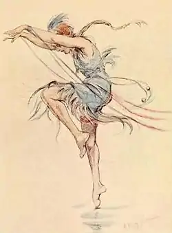 You will ask, is it possible for anything to move without making some continuous pattern? The answer is that there is no end to movement. We dance, and our arms and legs follow the curves and actions of our body. We run, and the same thing happens in a different degree. The dog wags his tail, not in one, but in many continuous movements. When we wish to plan a drawing or painting we must put this sense of movement into our picture. Obviously our figures and objects