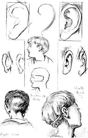 It is difficult to suggest any rules to help in the drawing of an ear. The main thing to bear in mind is the use of the ear.