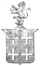 Arms, Gules, 4 crosses pat. Argent 2 and 2, on a canton Azure a lion passant Or. Crest, a lion rampant, Or, holding between his feet a cross patonce—Gules. In this case the arms are precisely those of Chase, of Chesham, the only difference being in the color of the cross in the crest.