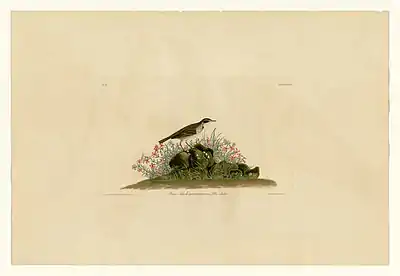 The notes of the Prairie Titlark are clear and sharp, consisting of a number of tweets, the last greatly prolonged. The two individuals which I procured proved to be males. They seemed to be in imperfect plumage, it being then the month of October, and the crescent on their breast not being so distinctly defined at the surface, as it was deeper among the feathers. Of their mode of nestling, and other habits, I can say nothing, as I never happened to meet with another individual of the species.
