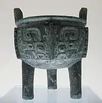 - ↑ In Chinese history and culture, possession of a ding tripod is often associated with power and dominion over the land. Therefore, the ding tripod is often used as an implicit symbol of power.