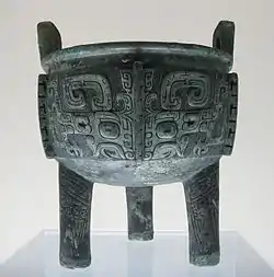 - a three-legged kettle, a tripod kettle, used for cooking and later for ceremonial purposes in ancient China, and often made of bronze