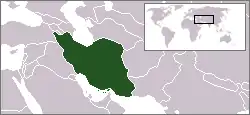 Via some other European language, ultimately from Persian ایران (īrān), from Middle Persian 𐭠𐭩𐭥𐭠𐭭 (ērān), from Proto-Iranian *aryānām (“of the Aryans”), genitive plural of *arya- (as in Old Persian 𐎠𐎼𐎡𐎹 (ariya-), Avestan 𐬀𐬌𐬭𐬌𐬌𐬀 (airiia-), Ossetic ир (ir, “Ossetian”)). Compare Parthian 𐭀𐭓𐭉𐭀𐭍 (aryān, “Iran”). The 𐭠𐭩𐭥𐭠𐭭 (ērān) came to refer to the lands in which Iranians lived during the late 3rd to early 4th centuries. Prior to that time it was an ethnic, not geographic, term used for the Iranian peoples.