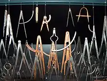 From German Zirkel, Polish cyrkiel, Russian ци́ркуль (církulʹ), all from Latin circulus (“circle”). Doublet of cirklo.
