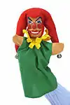 - puppet, marionette (small model of a person or animal which can be moved by an actor, e.g. via strings, rods, or as a glove)