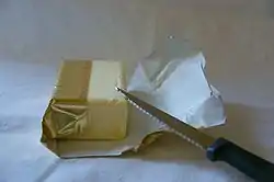 Cognate with Galician and Mirandese manteiga, Asturian and Catalan mantega, Spanish and Aragonese manteca and possibly with Belarusian смятана (smjatana), Bulgarian, Russian, and Ukrainian сметана (smetana), Polish śmietana, Slovak smotana and Slovene smetana.[1]