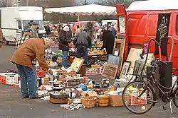 From pulo (“flea”) + bazaro (“bazaar”), a partial calque of French marché aux puces. Similar terms include Polish pchli targ, German Flohmarkt, Russian блоши́ный ры́нок (blošínyj rýnok), Italian mercato delle pulci.