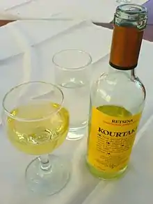- A Greek resinated white or rosé wine of a sort that has been produced for at least 2700 years.