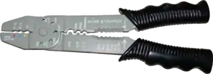- A small, hand-held device used to strip the electrical insulation from electric wires.