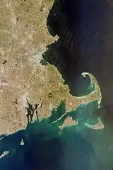 - (geography) cape, promontory, headland (piece of land that extends beyond the coast into a sea or a lake)